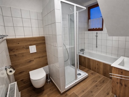 - 2 db apartman (2 szoba /apartman; 1 db 3 ágyas szoba és 1 db franciaágyas szoba)